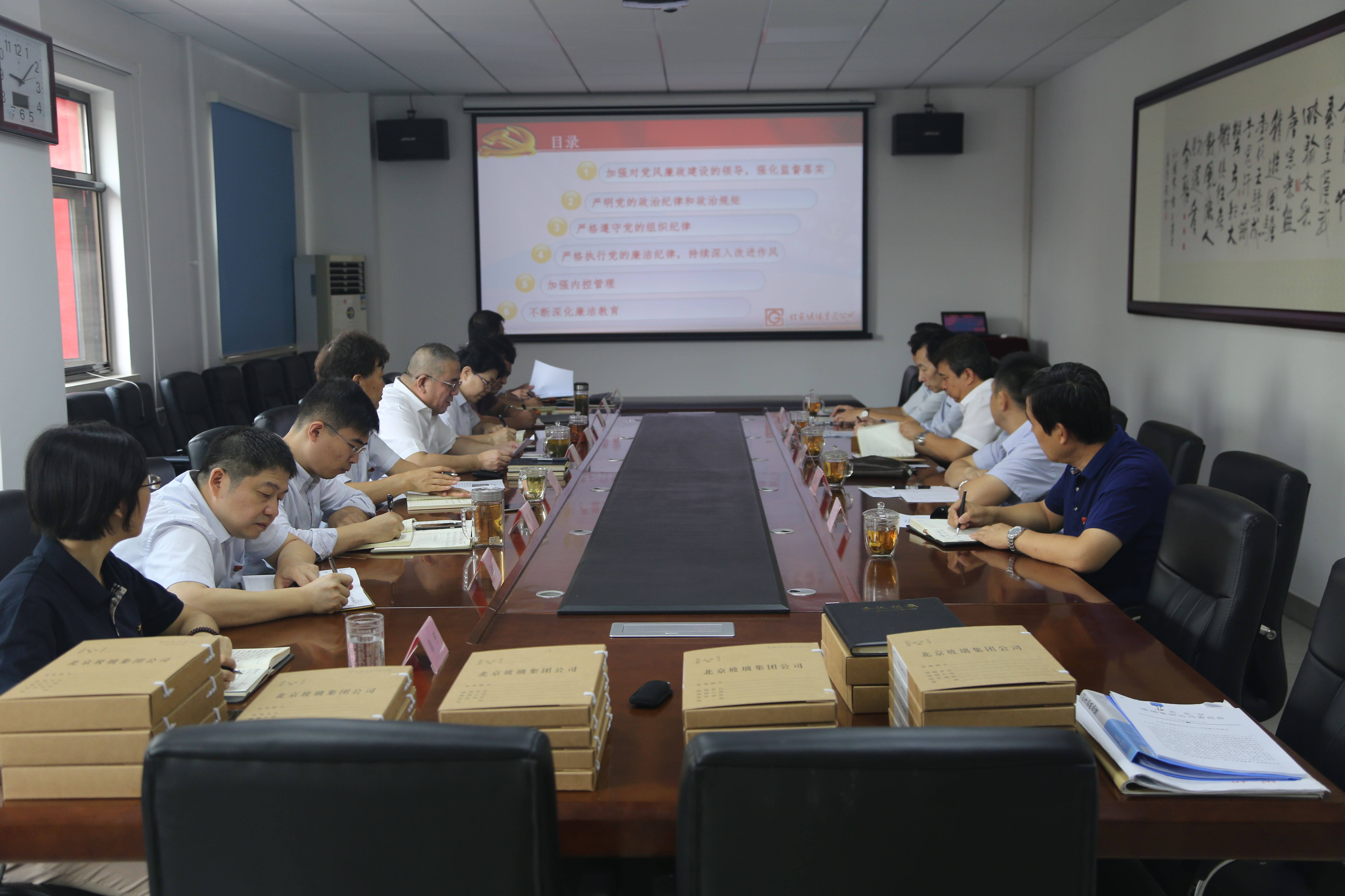 聽取匯報后,檢查組成員查看了集團公司黨風廉政建設工作的相關文件。